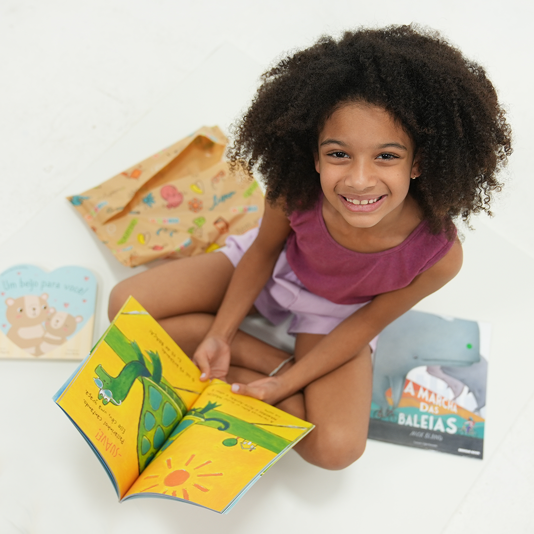 No plano Uni, as crianças recebem todos os meses 1 livro infantil + 1 item da Ludoteca